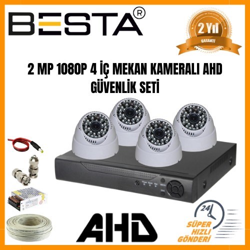 2Mp Ahd 1080P Gece Görüşlü 4 Kameralı Dome Güvenlik Sistemi