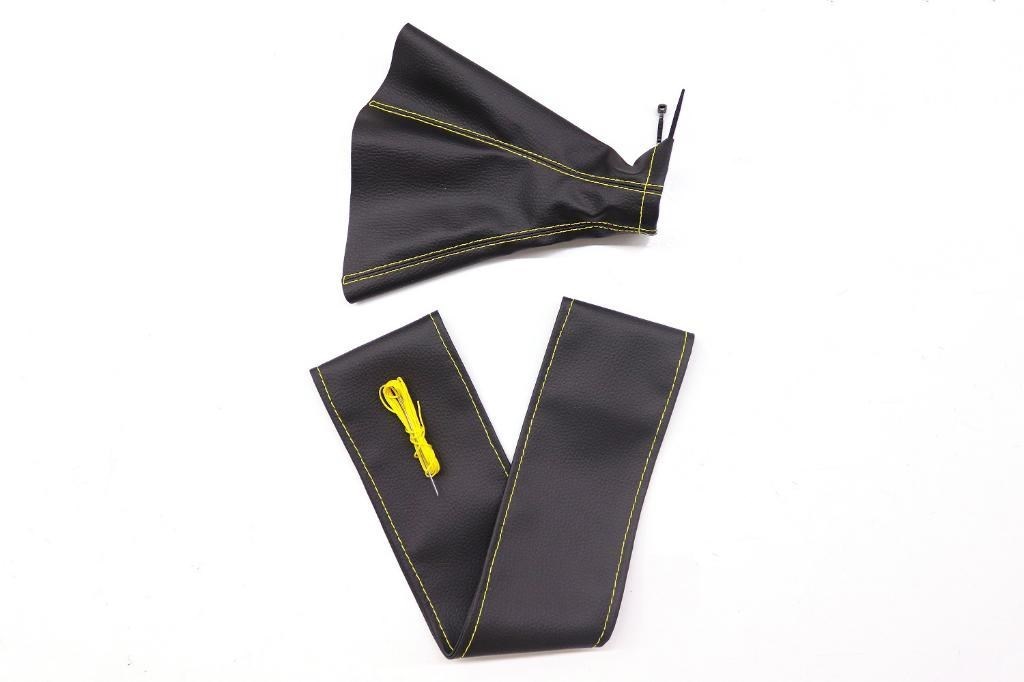 Tüm Araçlara Uyumlu Direksiyon Kılıfı Ve Vites Körüğü Siyah Deri Sarı Nakışlı