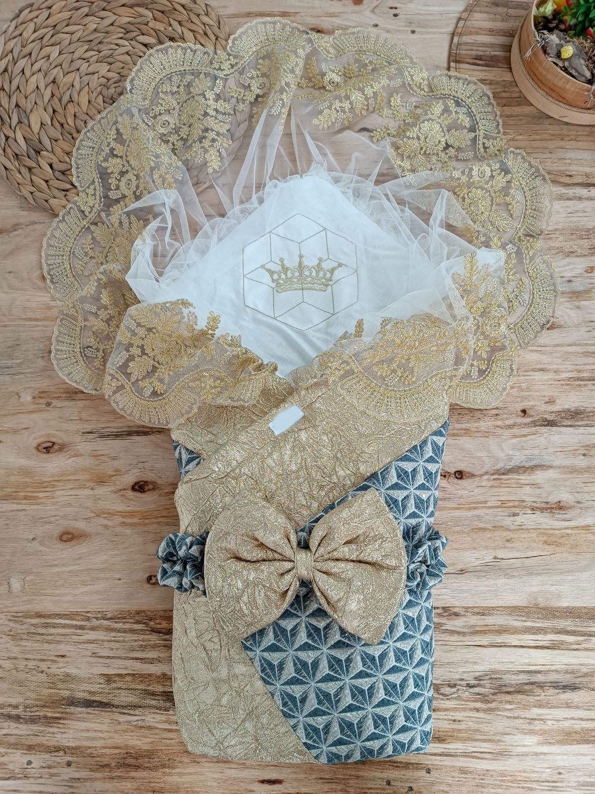 Yenidoğan Ultralüks Piramit Desenli Güpürlü Bebek Battaniyesi Kundak