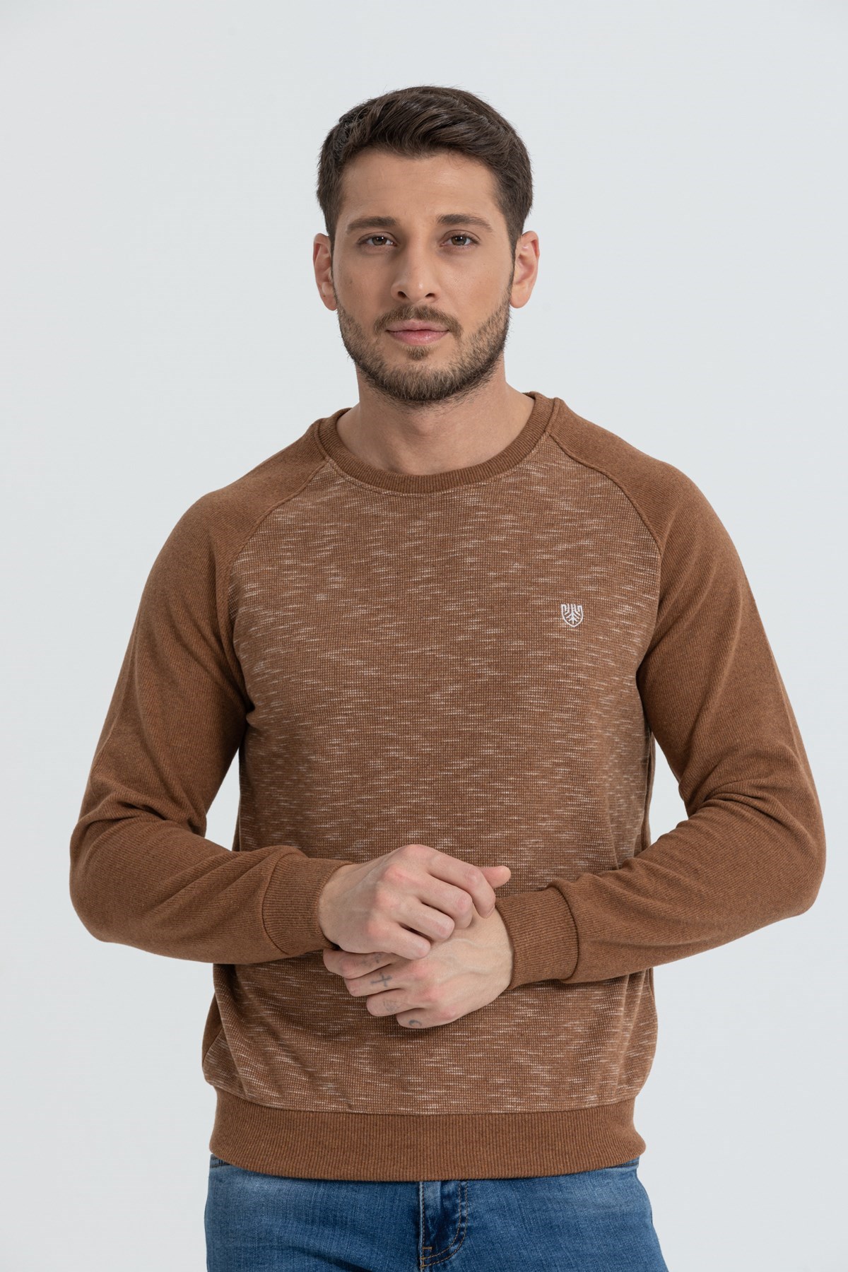 503-Kamel(M-L-XL-XXL) Desenli Uzun Kollu Sweatshirt Kamel. Yetişkin, standart kumaş örme,pamuk-polyester smart- office, günlük, menswear, geri dönüştürülmüş metaryal. Stüdyo Çekimlerinde Renkler Işık Farklılığından Dolayı Değişiklik Gösterebilir.