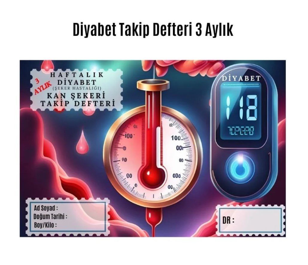 Diyabet Ölçüm Takip Çizelgesi Defteri A Kalite Özel Tasarım 3 Aylık A5