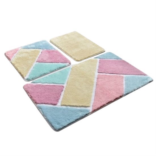 Colore Renklı 3 Lu Set Klozet Takımı, Banyo Paspas Seti Halısı-20750