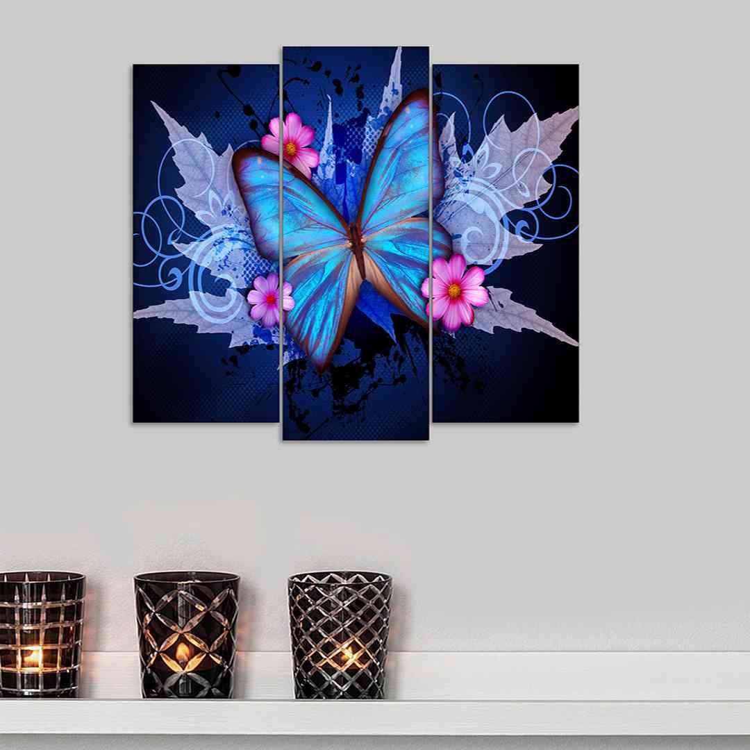 3 Parça Mavi Kelebek Mdf Tablo - T-3Dikey-75 19X40