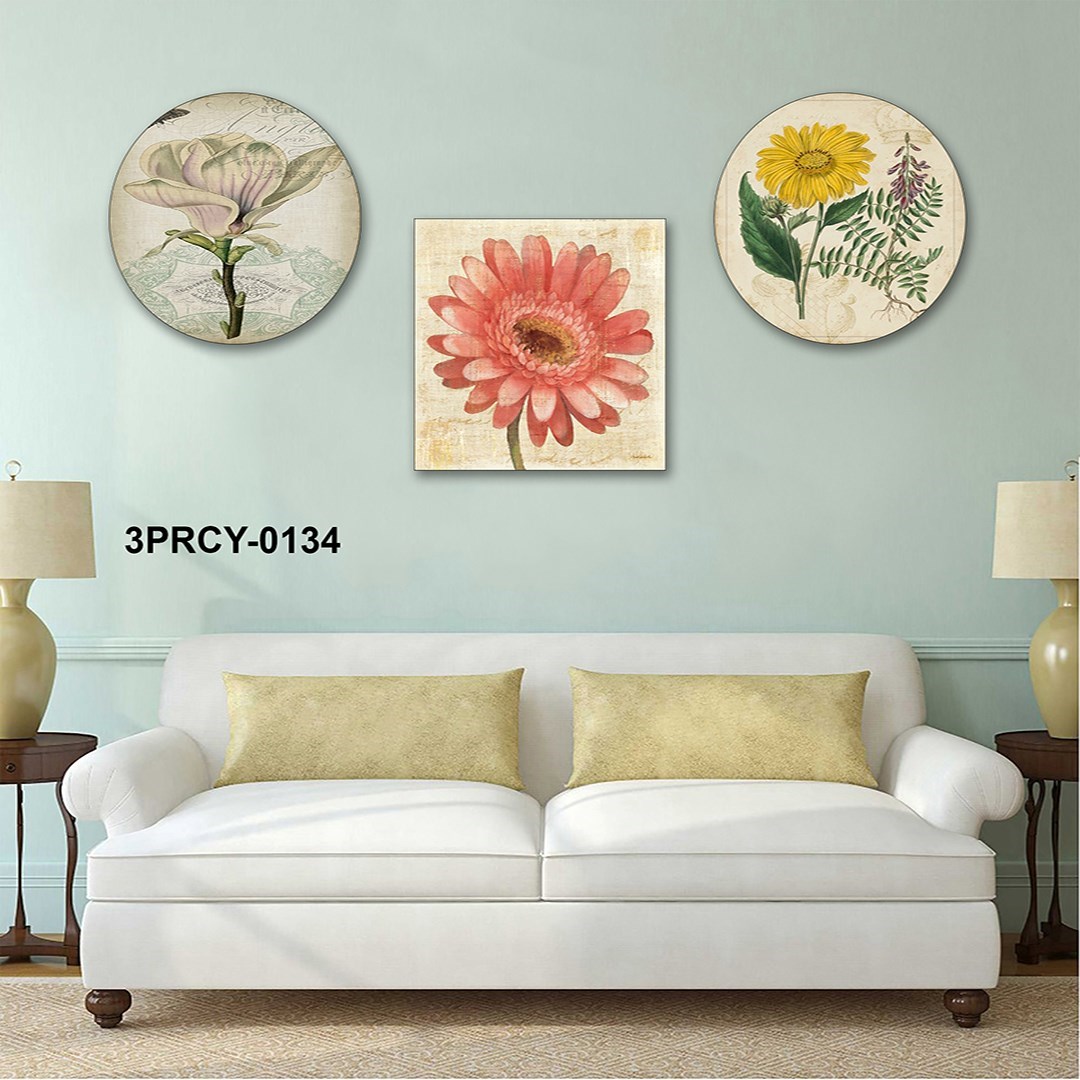 3 Parça Mdf Tablo Dekoratif Çiçekler - T-3Prcy-0134 30X30