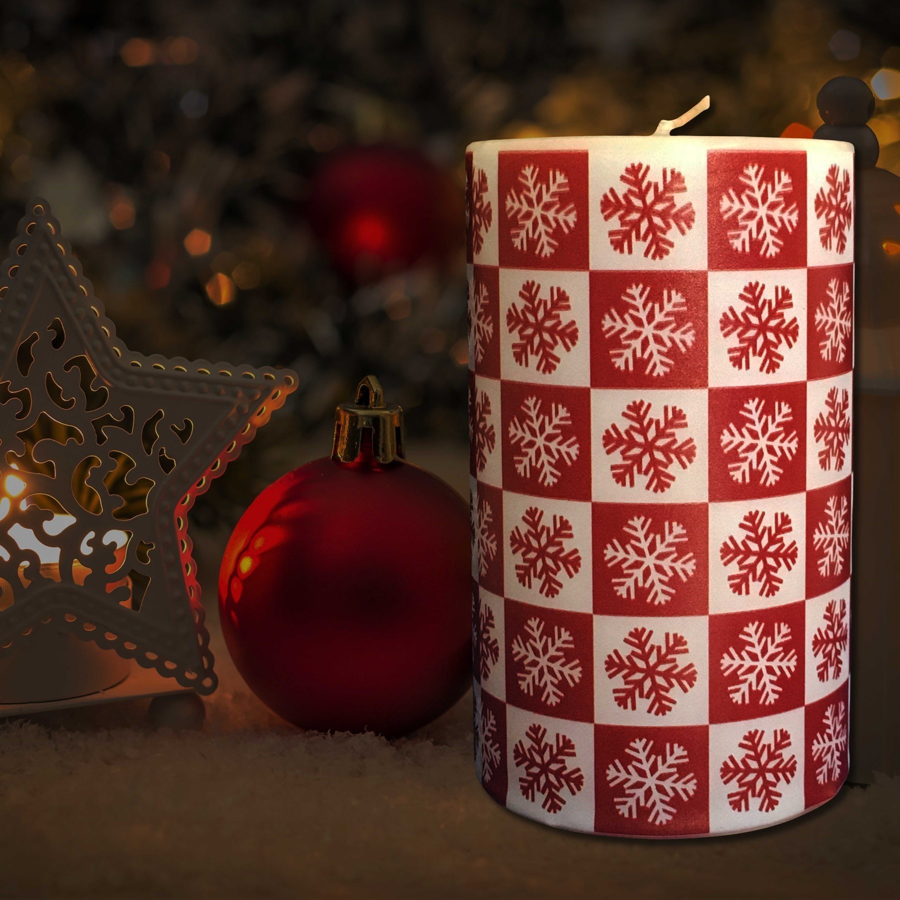 Kar Tanesi Desenli Silindir Kütük Mum 7x12 cm