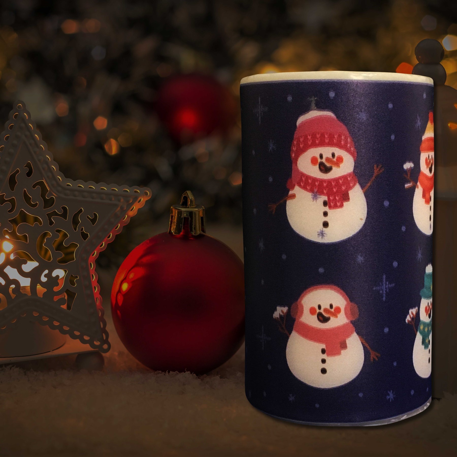 Kardan Adam Desenli Silindir Kütük Mum 7x12 cm