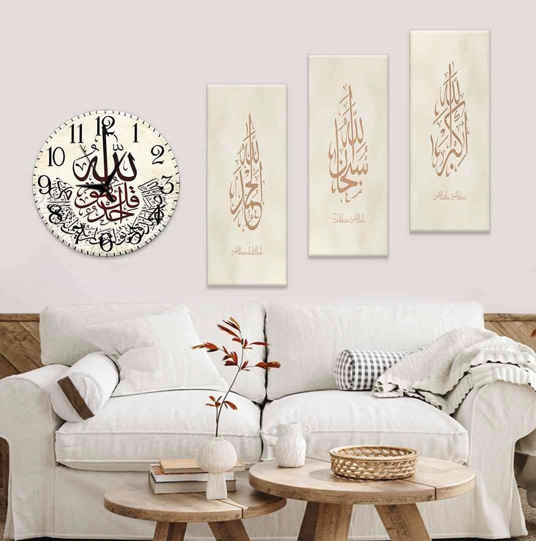 Evimona 4 Parça Dua Temalı Mdf Saatli Tablo Ds-0201
