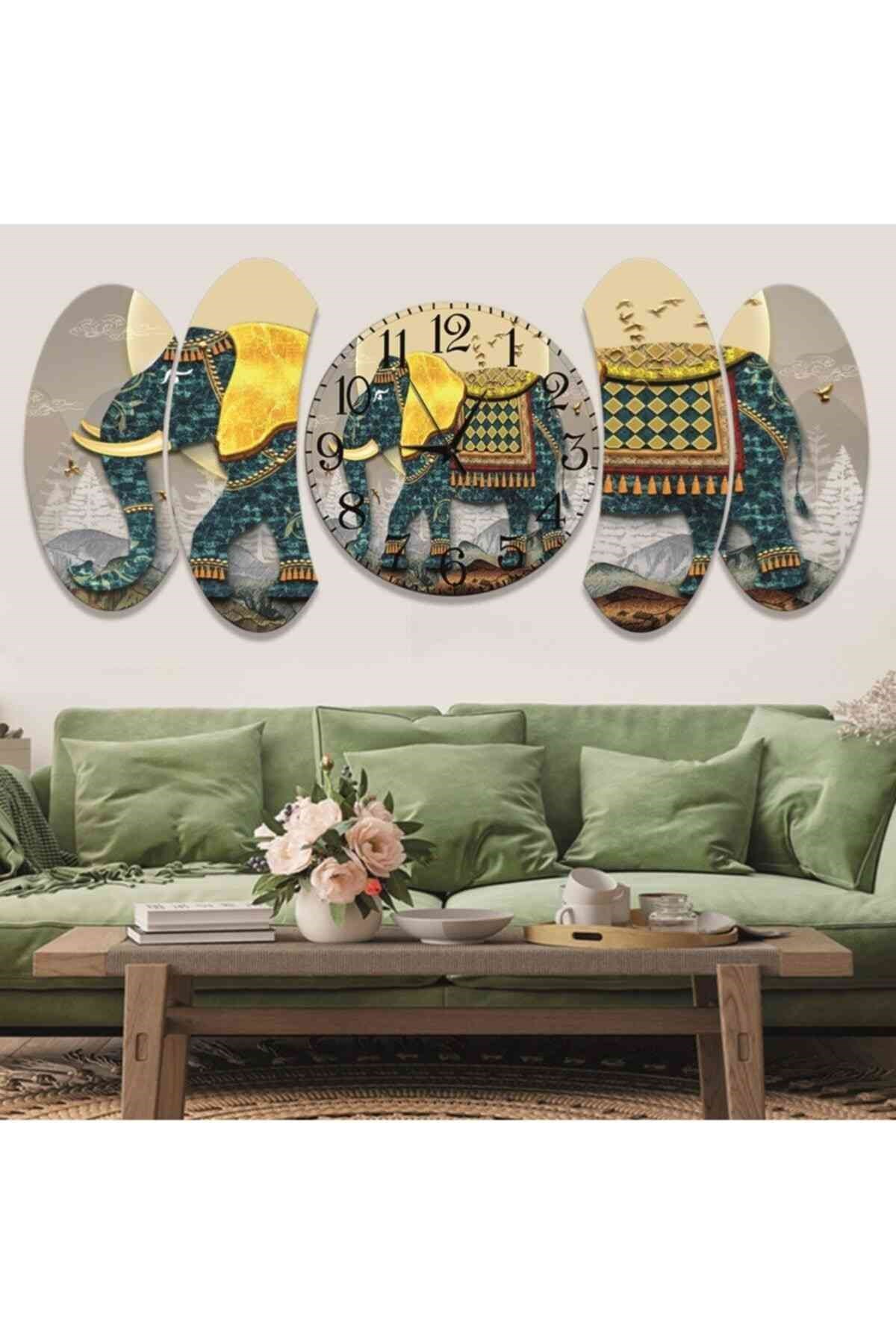 5 Parça Illüstrasyon Tasarım Saatli Mdf Tablo