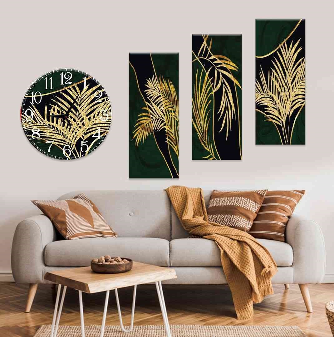Evimona 4 Parça Çiçek Temalı Mdf Saatli Tablo Ds-0142