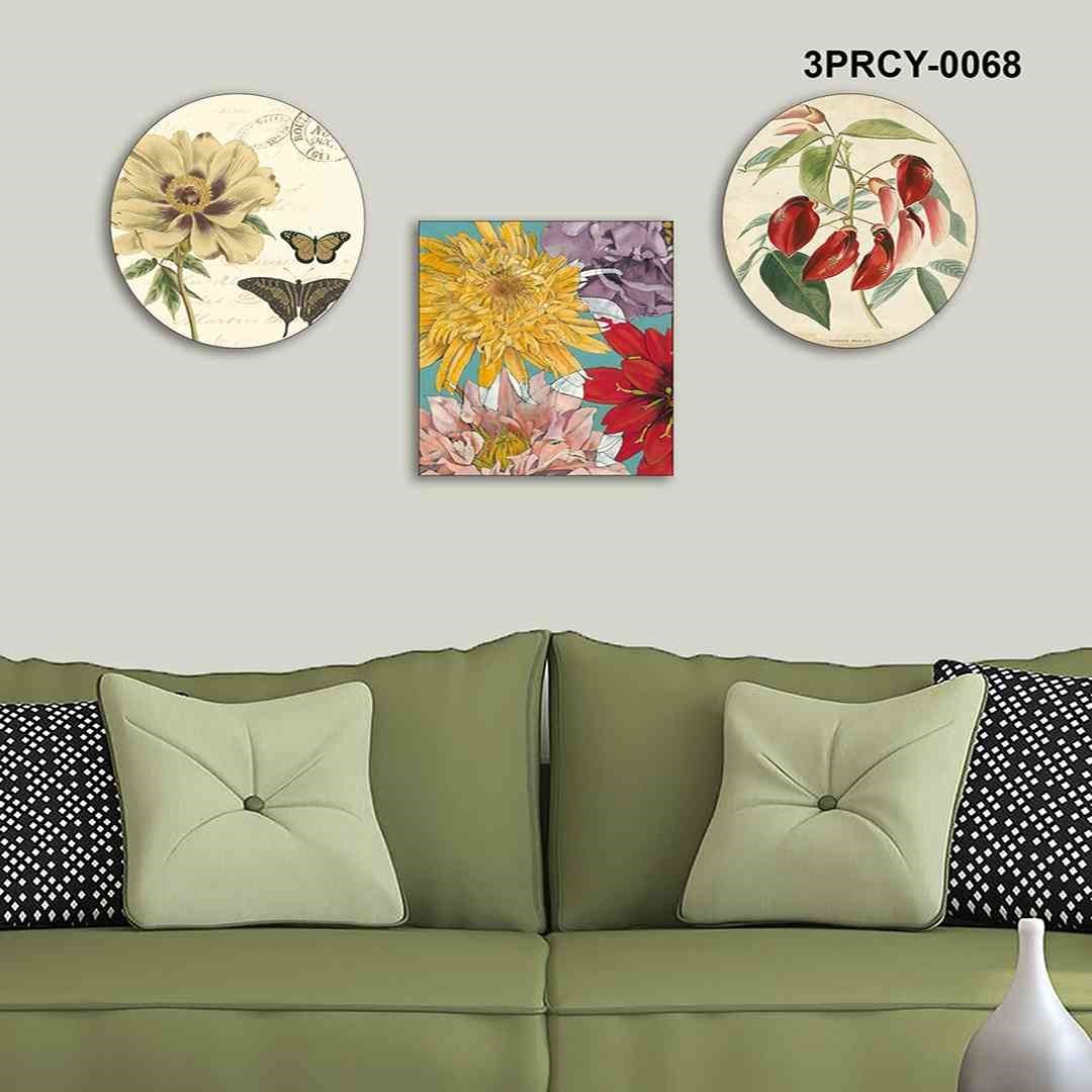 3 Parça Dekoratif Çizim Çiçek Desenler Mdf Tablo - T-3Prcy-0068 30X30