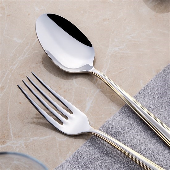 Katre Altın Saten 30 Parça Çatal Kaşık Takımı - Renk: