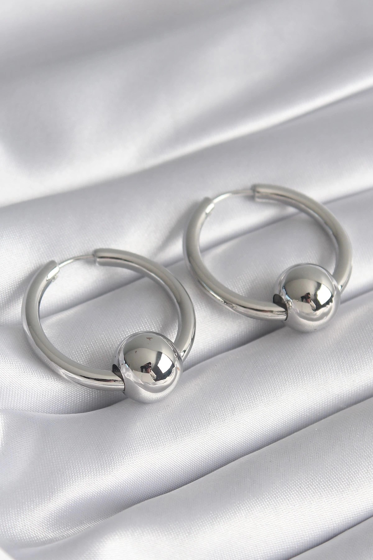 Mey İthalat® Pirinç Gümüş Renk Halka Top Model Kadın Küpe
