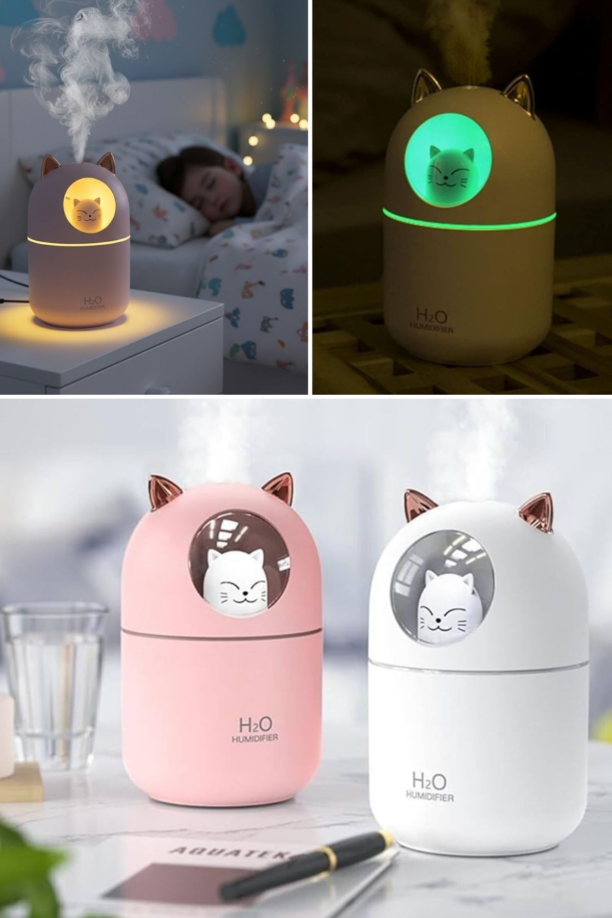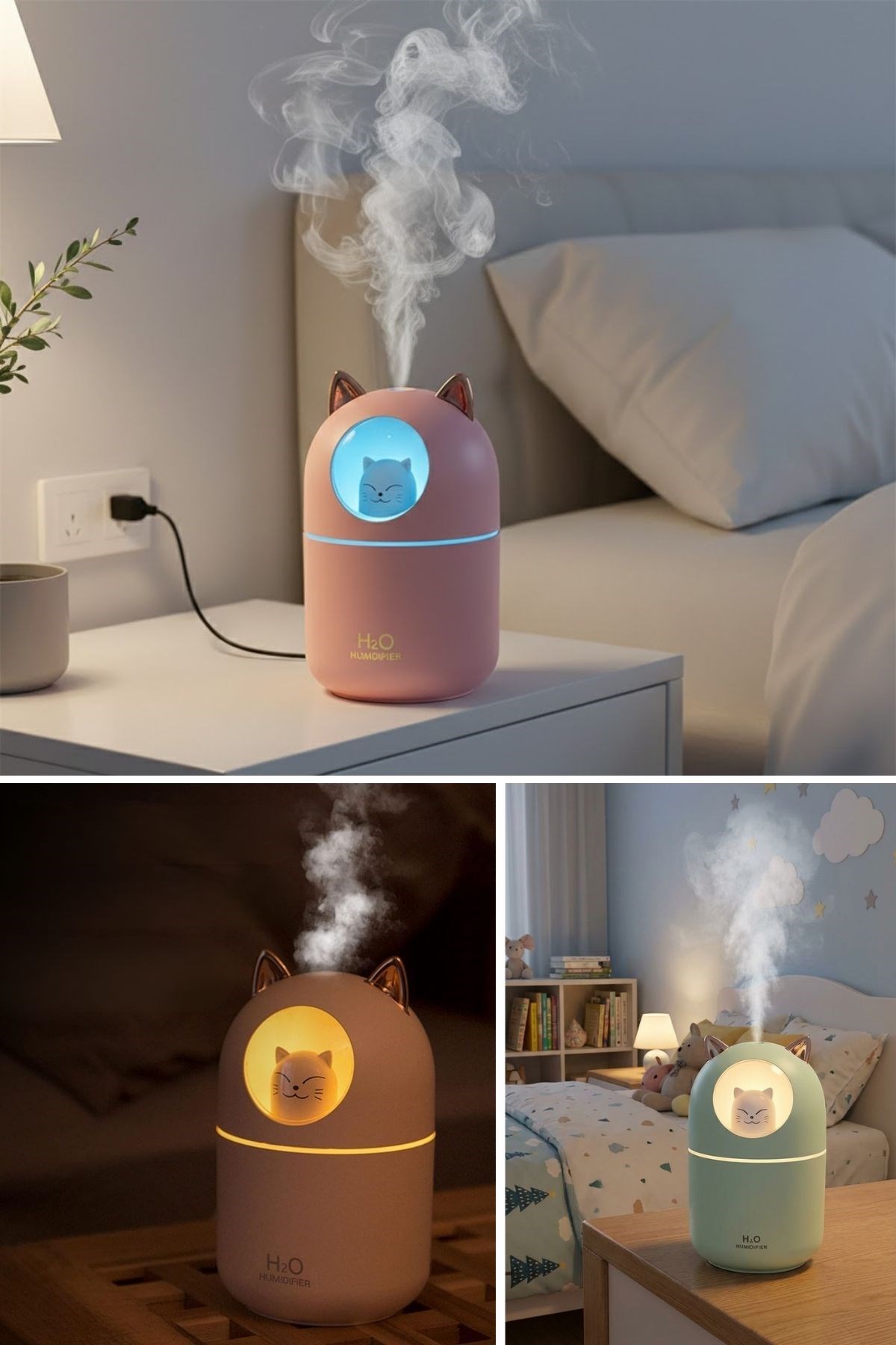 Kompakt ve hafif tasarımı sayesinde yer kaplamaz, kolayca taşınabilir. USB bağlantısı ile pratik kullanım sağlar. Sevimli kedicik figürü ile hem çocuklar hem de hayvan figürlü dekor ürünlerini sevenler için ideal bir hava nemlendirici alternatifidir.