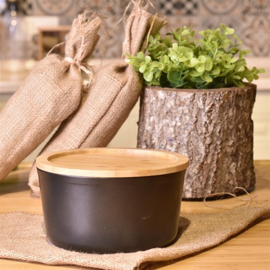 Slalom - Bambu Kapaklı Granit Saklama Kabı 16Cm Siyah-24474