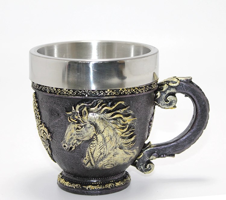 3d Kabartmalı At Büstü Paslanmaz Çelik Kupa Bardak