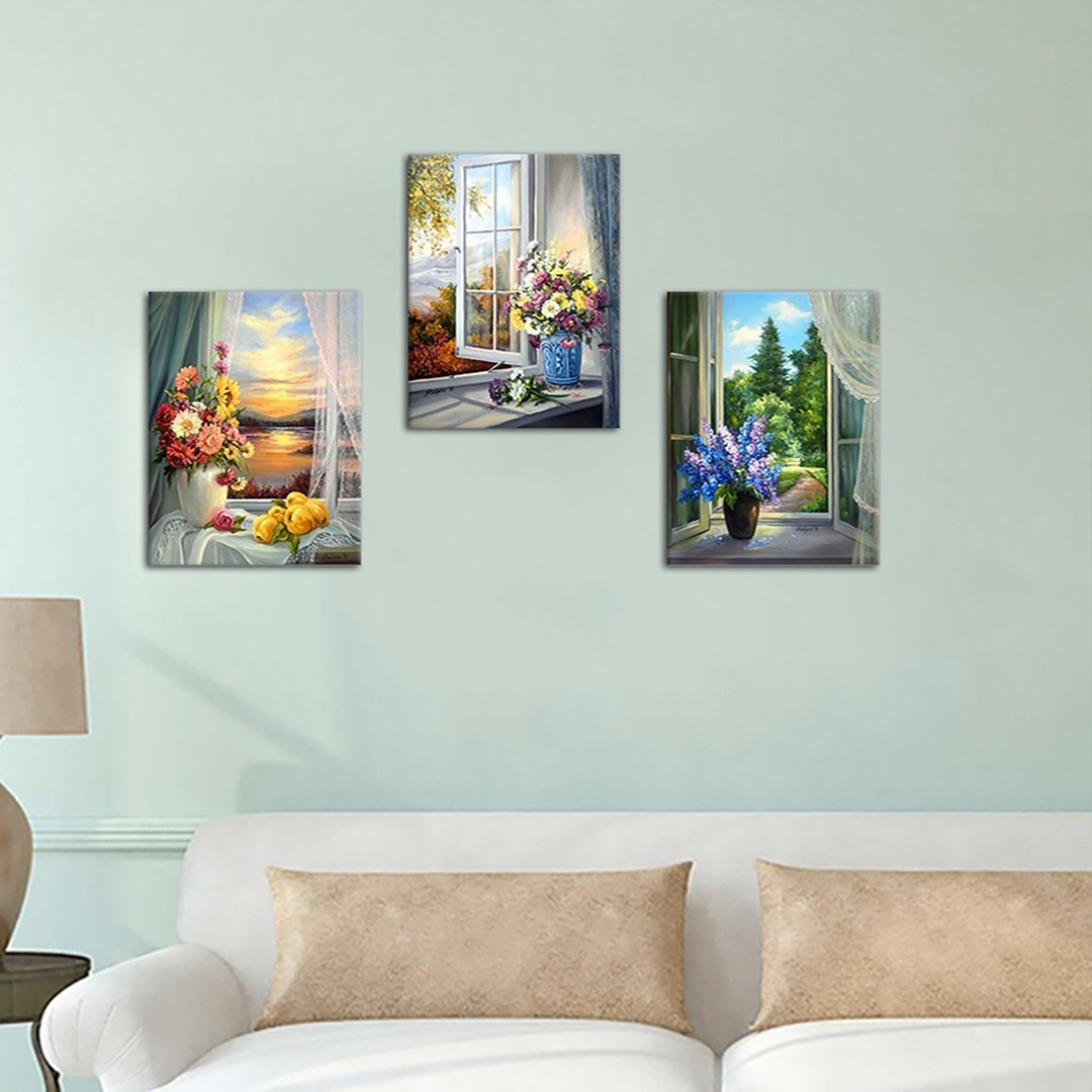 3 Parça Pencere Önü Saksı Tasarım Mdf Tablo - 3Prc40X30-0117 40X30