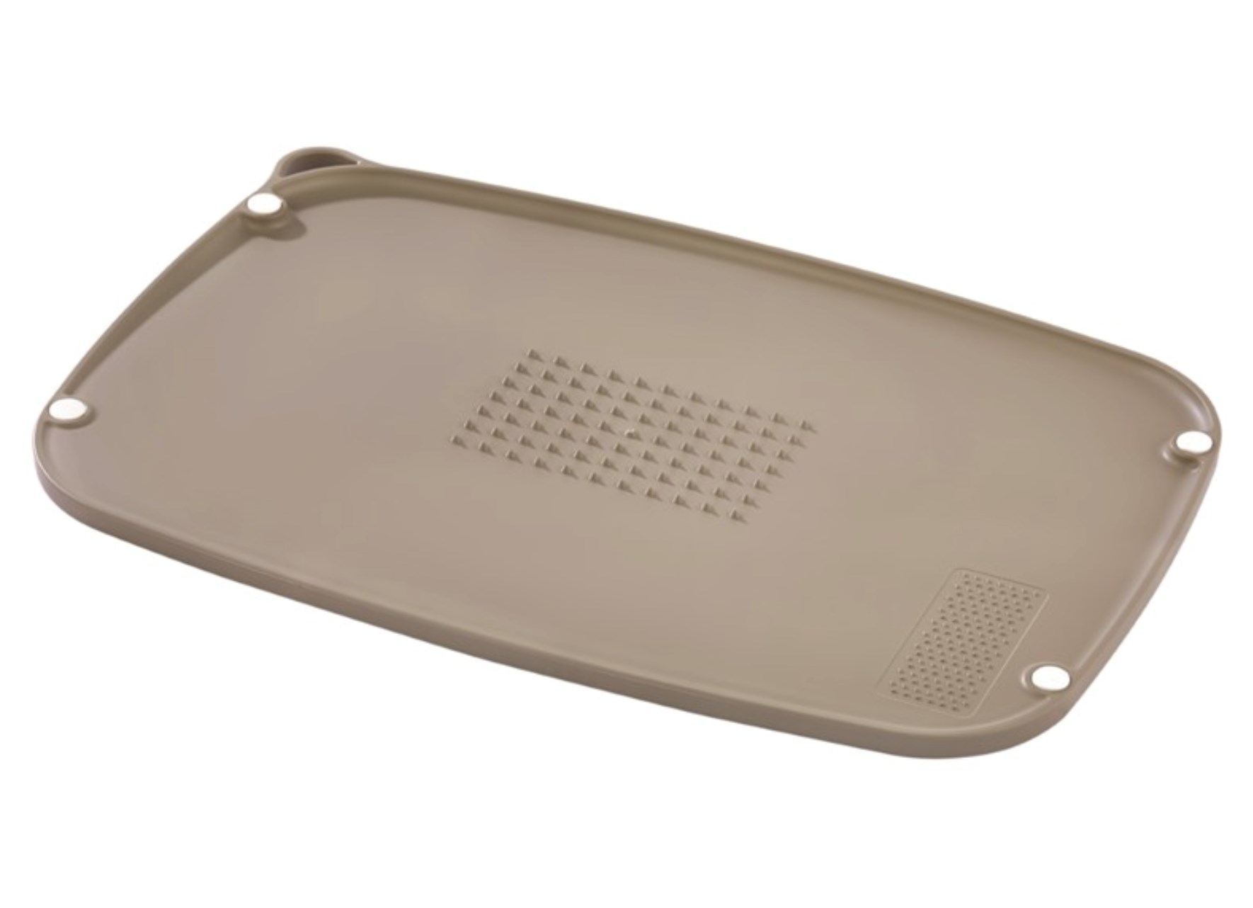 Kesim Panosu, mutfakta işlerinizi kolaylaştıran çok işlevli bir üründür. Ortasında et ve benzeri malzemeleri sabitlemek için özel olarak tasarlanmış tırtıklı bir yüzey bulunur, böylece malzemelerin kaymasını engeller ve kesim işlemlerini güvenle yapmanızı sağlar.
