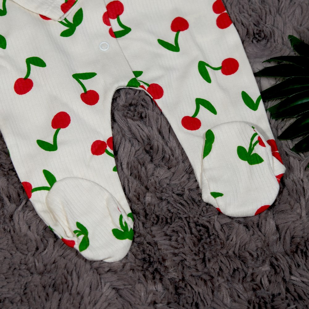 Sıcak tutma: Kirazlı Patikli Tulum, bebeğin vücut ısısını koruyarak onu soğuktan korur.