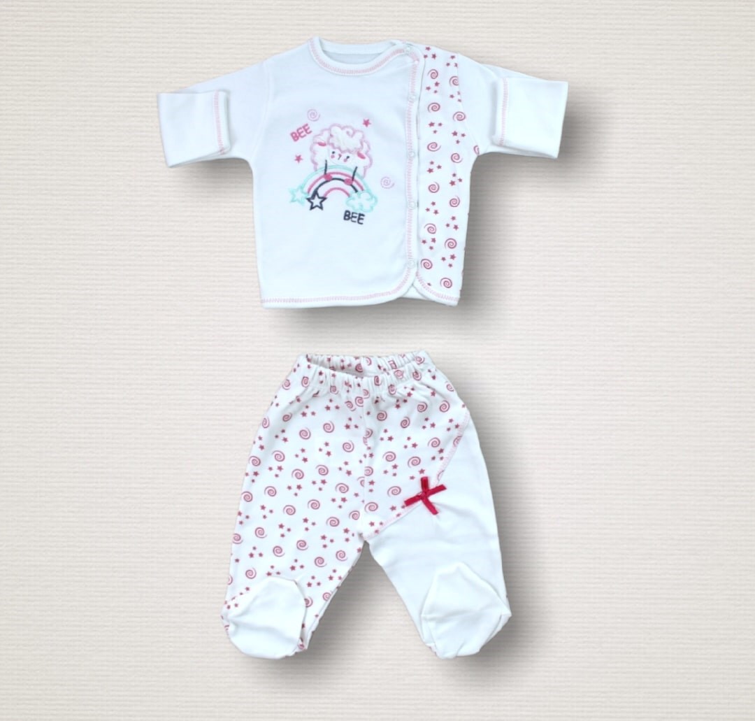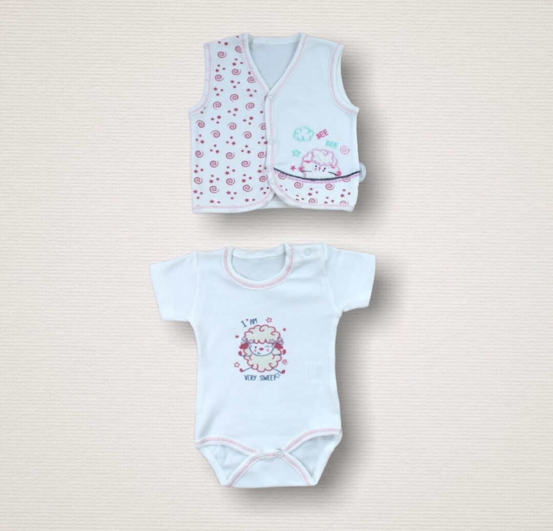 Kıvırcık Kuzu Nakışlı %100 Cotton Antibakteriyel 10lu Zıbın Takımı Hastane Çıkışı