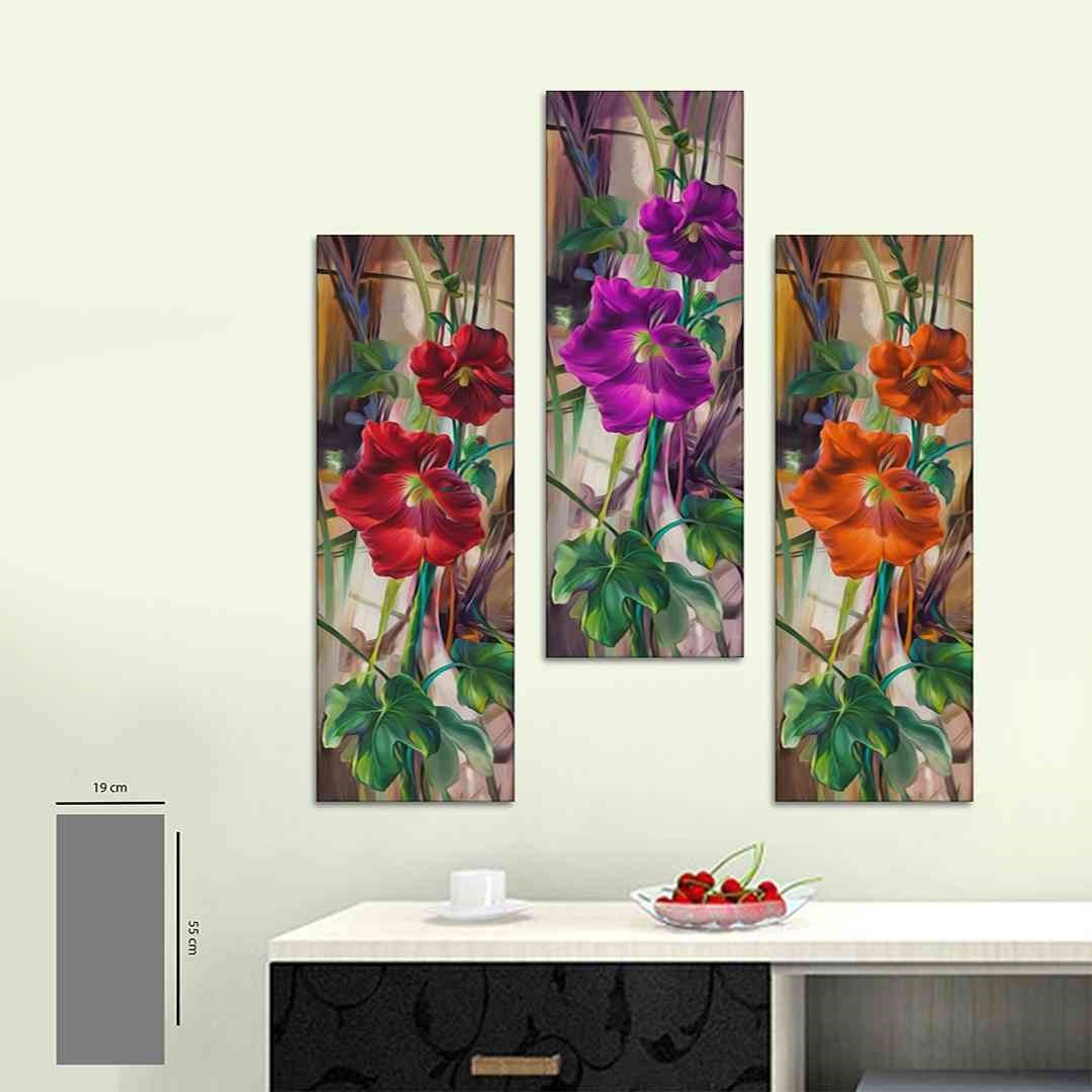 3 Parça Renkli Zambak Mdf Tablo - T-3Dikey-18 19X40