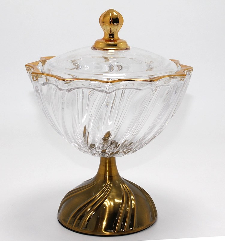Metal Ayaklı Kristal Cam Şekerlik Gold Detaylı Sunumluk