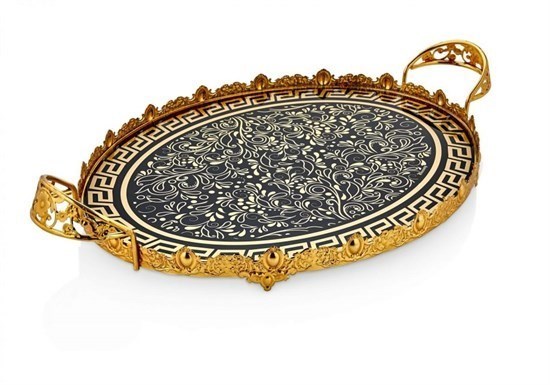 Werony Altın/Gümüş Yaldızlı Oval Tepsi 30x40cm - 30459