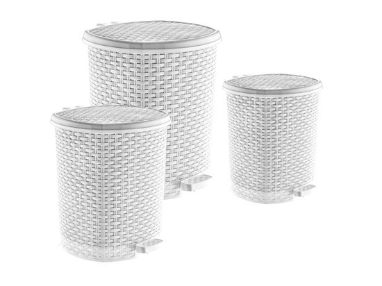 3 Parça Rattan Pedallı Çöp Kutusu Seti - Beyaz - 38880