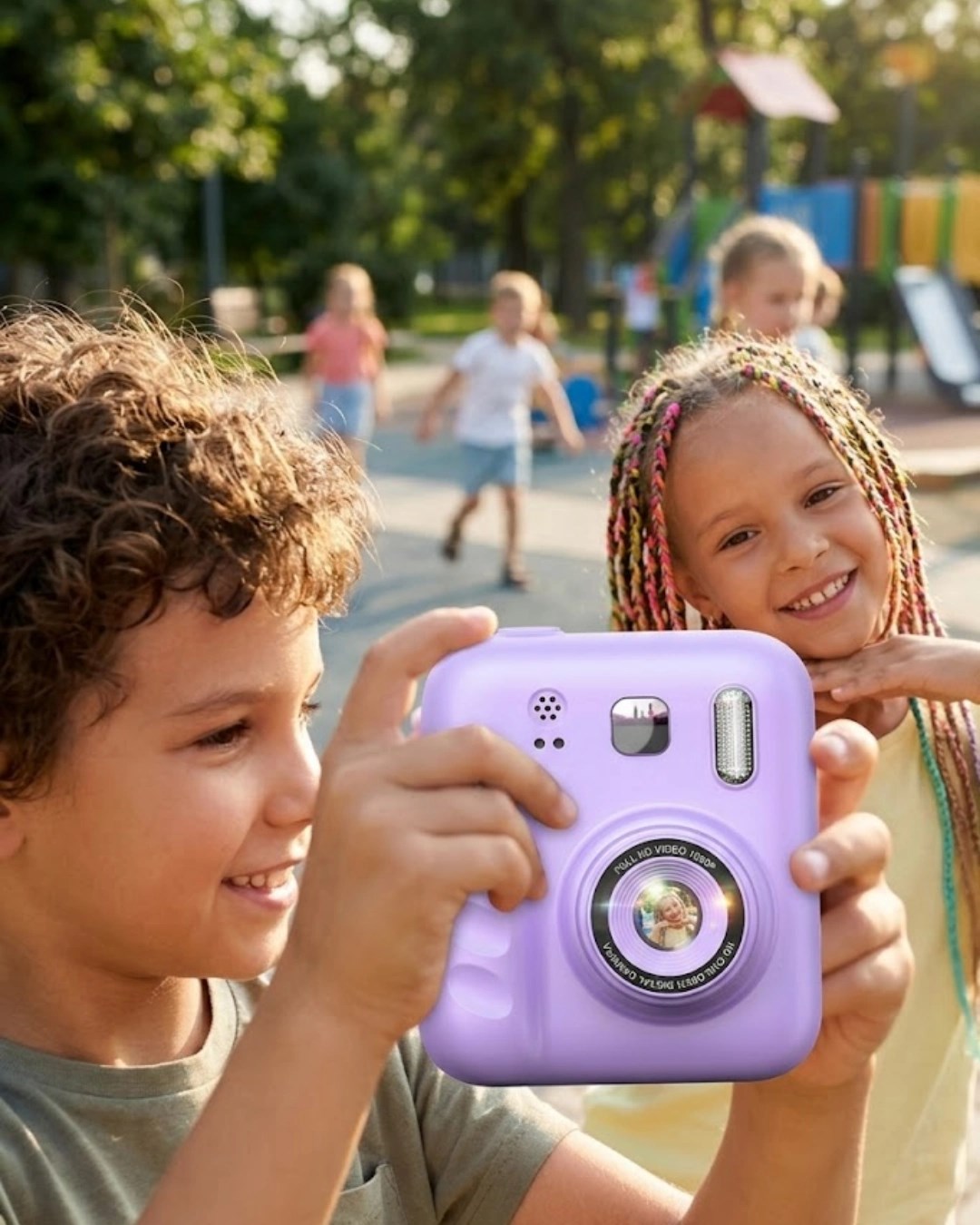 Çocuklar İçin Anında Baskılı Kamera Hd Ekran 4 Rulo Kağıt 5 Kalem Set Hediyeli