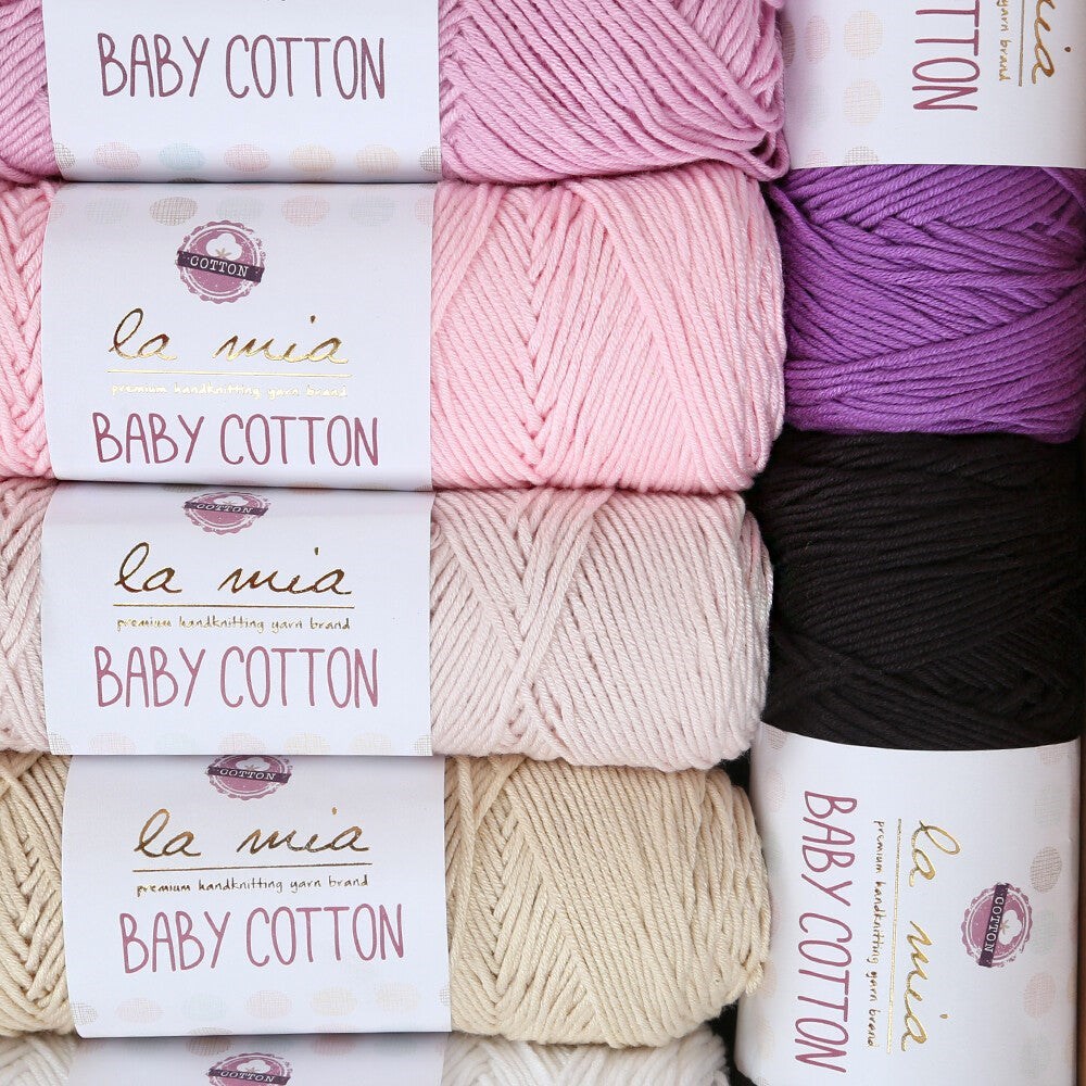 Hassas bebek ciltlerini tahrişe karşı koruyan, rahatlıkla ve güvenle kullanabileceğiniz La Mia Baby Cotton iplikleri %50 pamuk içeriğine sahiptir. La Mia Baby Cotton iplikleri, özenle seçilmiş pastel renk tonları ve yumuşak dokusu ile hem içinizi hem sizi ısıtacak.