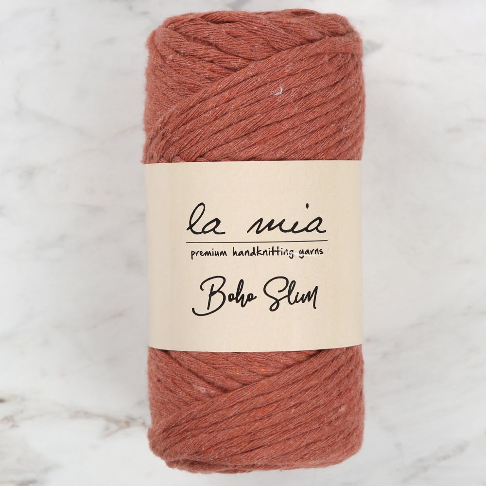 La Mia Boho Slim Tek Büküm Makrome İpi Makrome tığ veya şiş kullanmadan elle birbiri arasından geçirilen ipliklerden oluşan bir sanattır. La Mia Boho Slim makrome ipliği 3 mm kalınlığında ve 29 kattır. Yumuşak aynı zamanda da dayanıklıdır. Tarakla kolayca taranabilir.Kullanım Alanı: duvar süsü, kapı süsü, çanta, abajur, runner, perde, anahtarlık vb. yapımında kullanılabilir.
