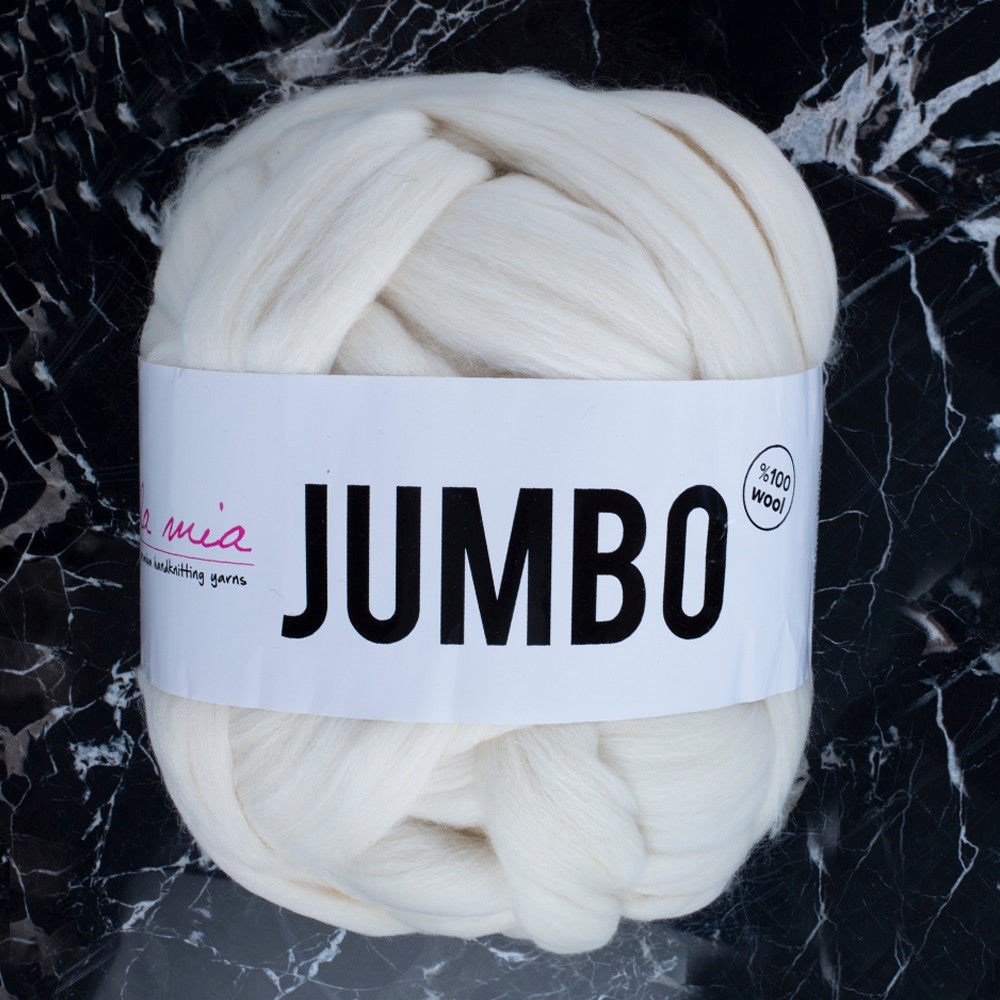 100% merino wool, La Mia Jumbo is a very thick yarn which is great for arm knitting. You can also use this beautiful yarn with big circular knitting needles or hooks like 20mm or 25mm.