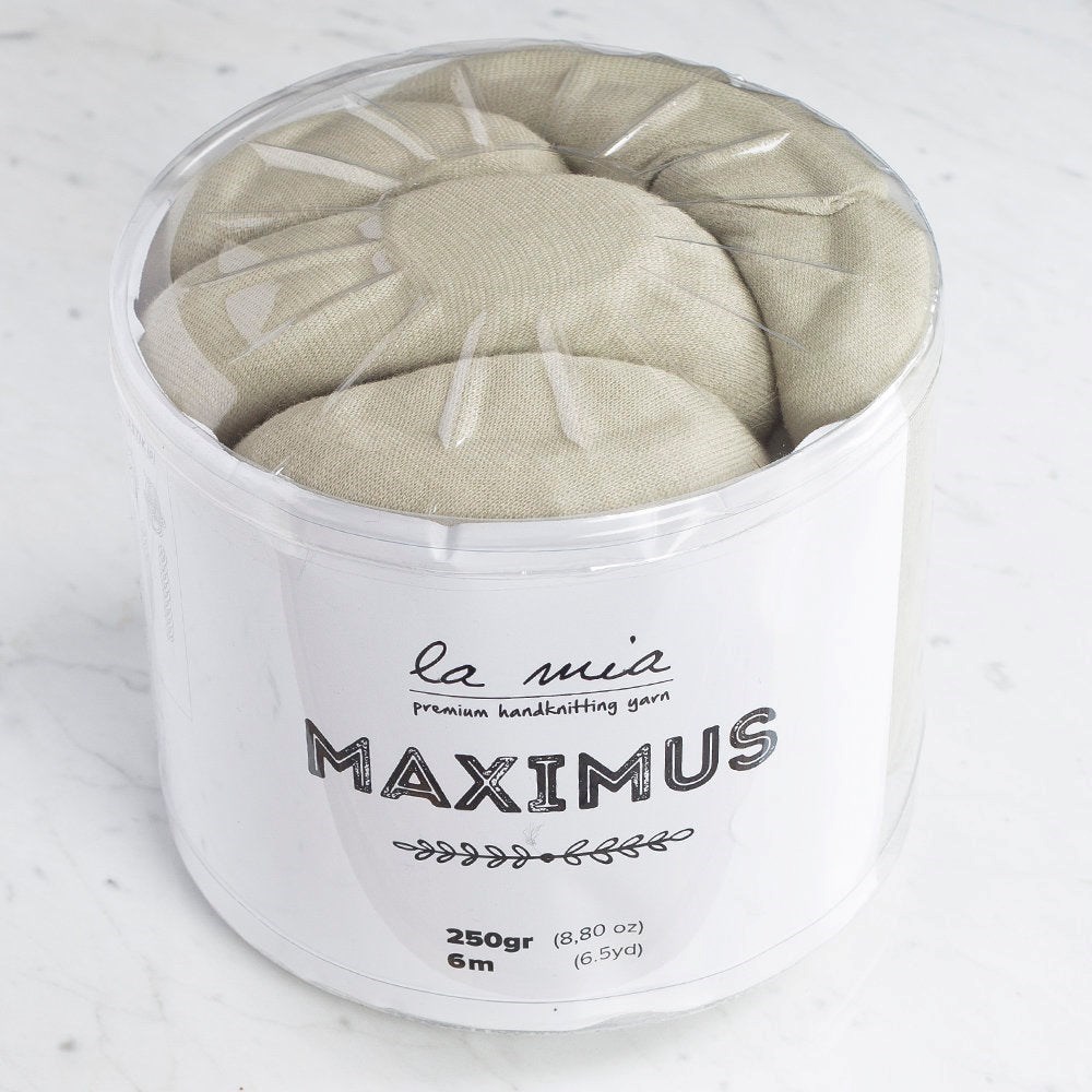 La Mia Maximus knot cushion is poly fiber filled spandex fabric to create a Jumbo knitting yarn. You can knit with your arms or big size knitting needle for creating any projects you desire. Perfect for a blanket, basket, and home decor projects.