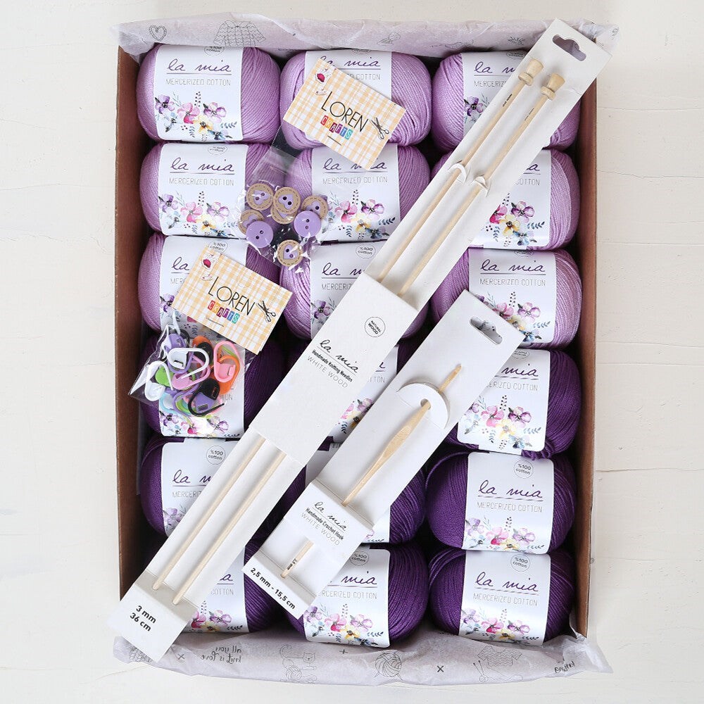 9 Adet La Mia Mercerized Cotton Koyu Mor El Örgü İpi - 59