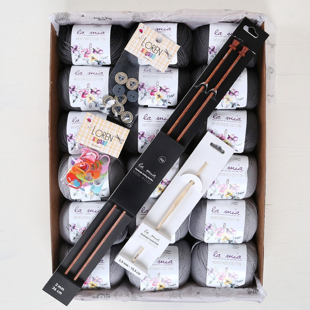 9 Adet La Mia Mercerized Cotton Koyu Gri El Örgü İpi - 236