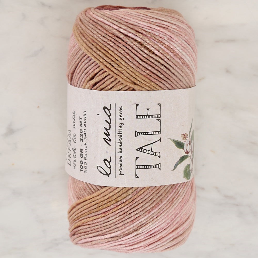 La Mia Markası'na ait yepyeni ürün TALE ile hayalini yarat. Geçişli renk tonlarının hakim olduğu bu seri ile havanız değişecek. Yumuşak ve kolay tüylenmeyen yapısı, güzel renk tonları ile örgüleriniz artık daha gösterişli. Tüm örgü modellerinizde güvenle tercih edebilirsiniz.