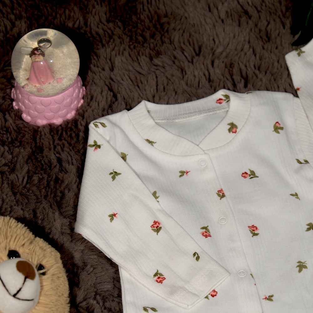 Sıcak tutma: Çiçekli Bebek Tulum, bebeğin vücut ısısını koruyarak onu soğuktan korur.