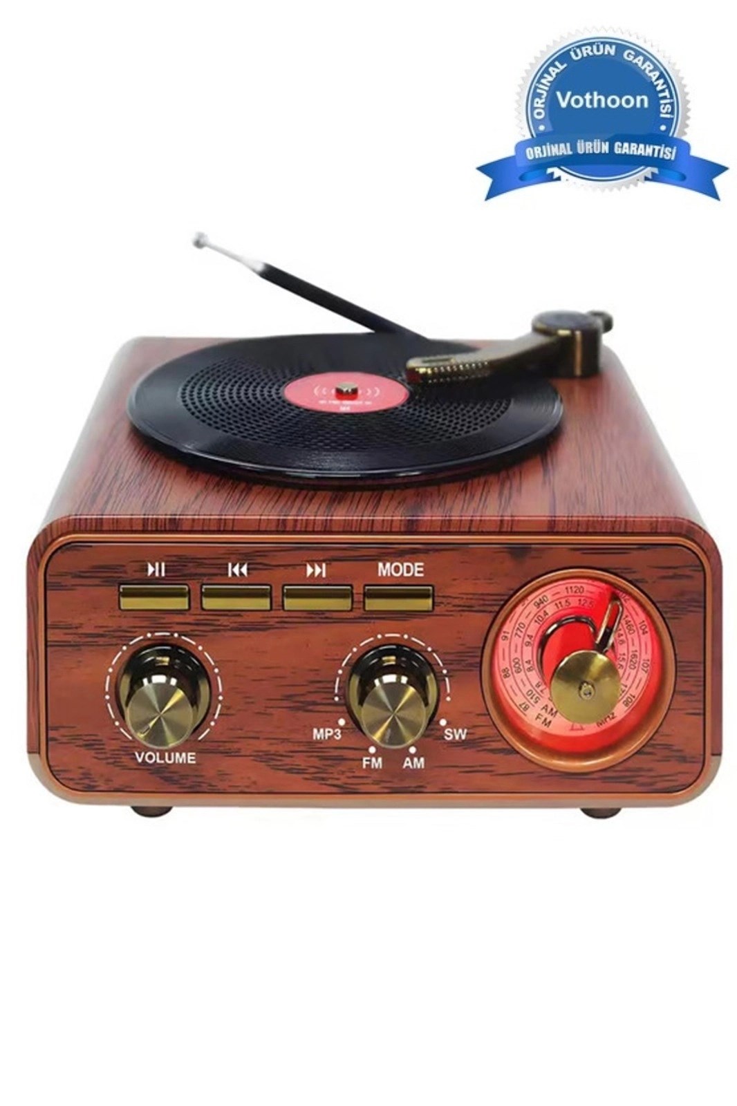 Nostaljik Tasarım Plak Çalar Görünümlü Radyolu Bluetooth Hoparlör Retro Müzik Plak