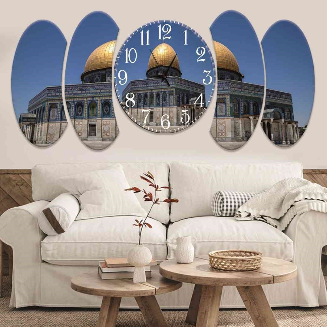Evimona 5 Parça Mescid-İ Aksa Tasarım Saatli Mdf Tablo