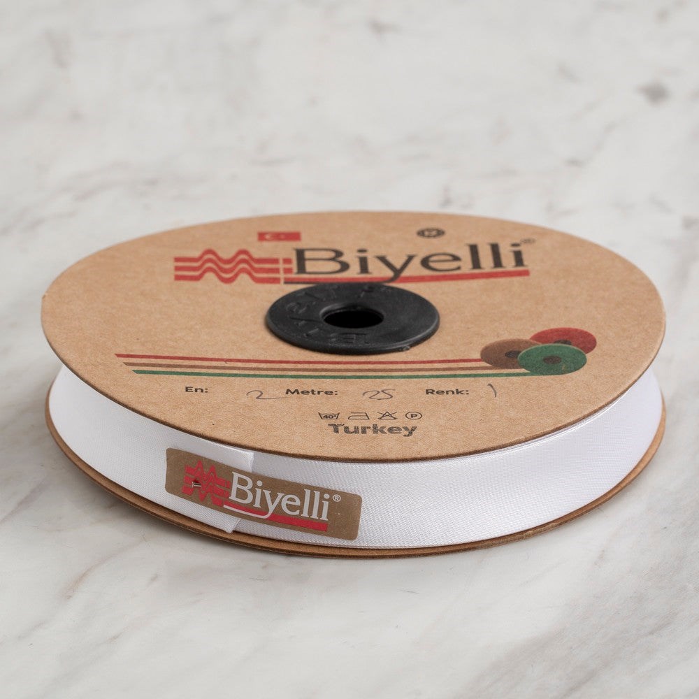 En 2 cm Boy 25 mt dir. Saten kumaştan üretilmiştir. % 100 Polyesterdir.