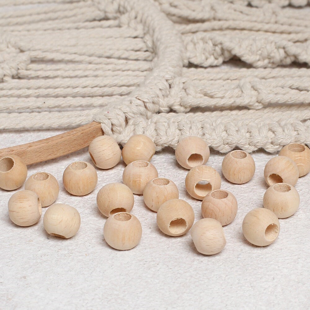 Loren Crafts 50 Adet Ham Yuvarlak Ahşap Boncuk 14m