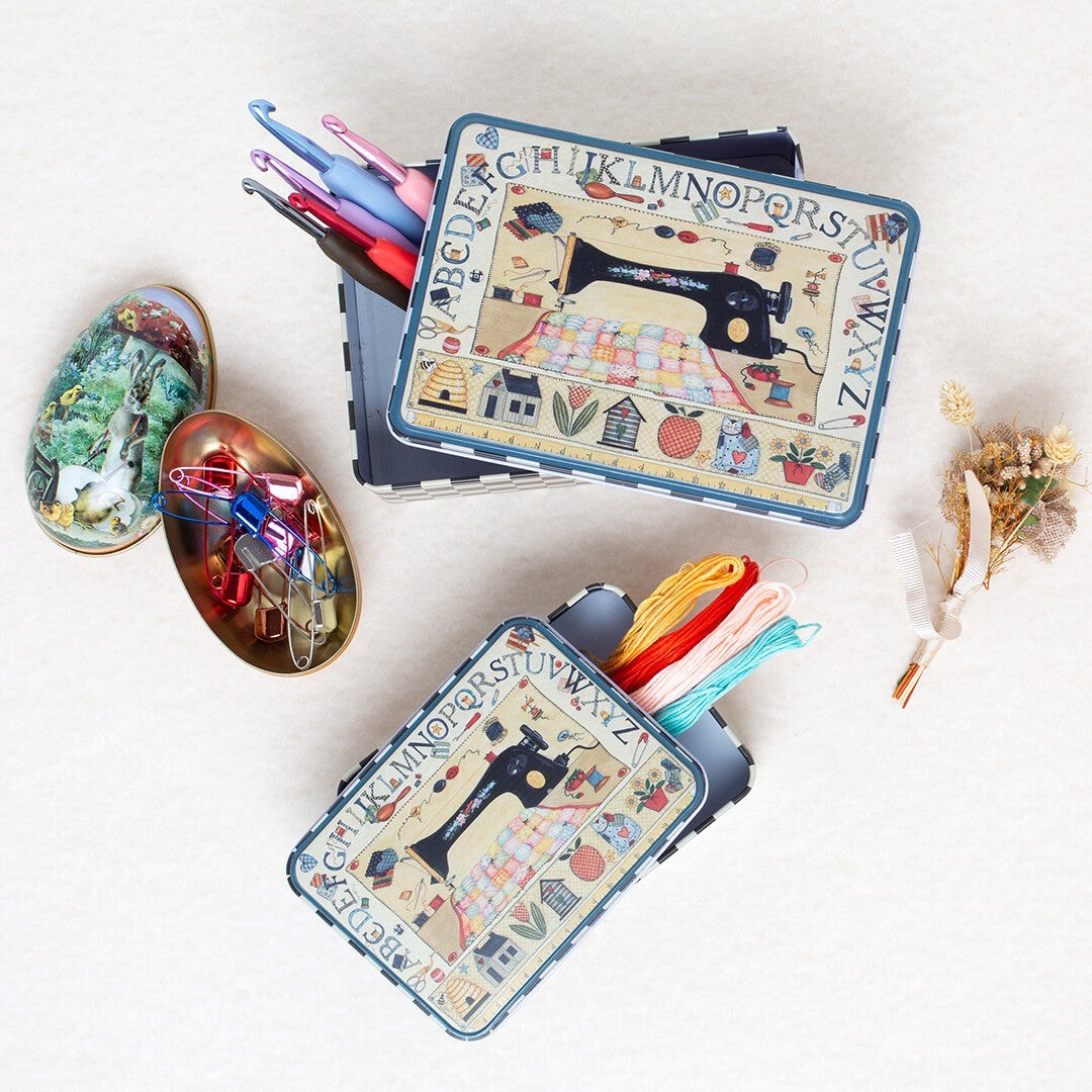 Teneke saklama kutusunu tüm dikiş, iğne, iplik gibi ürünlerinizi düzenli tutmak için kullanabilirsiniz. Aynı zamanda takı, düğme, boncuk ve küçük aksesuarlarınız için de idealdir.