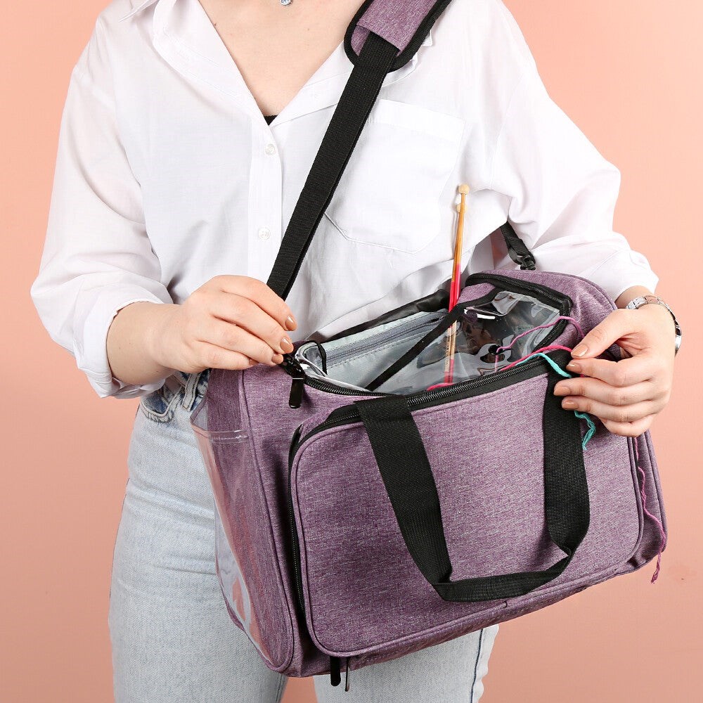 * Çantanın içinde 6 cep bulunuyor. Dış fermuarlı cepte bulunan şiş ve tığ gözü ile örgü aksesuarlarınız daha düzenli. Yanlarda 4 cep bulunan bu organize çanta ile suluğunuzu ya da bebeğinizin biberonunu da yanınızda taşıyın. Örgünüzü yaparken ipinizi çantanın içinden çıkartabileceğiniz minik delikleri mevcut. Rahat taşıma için üstten tutma sapı ve omuzda rahat taşıma için omuz pedli, 120 cm ayarlanabilir çanta sapı bulunmaktadır.