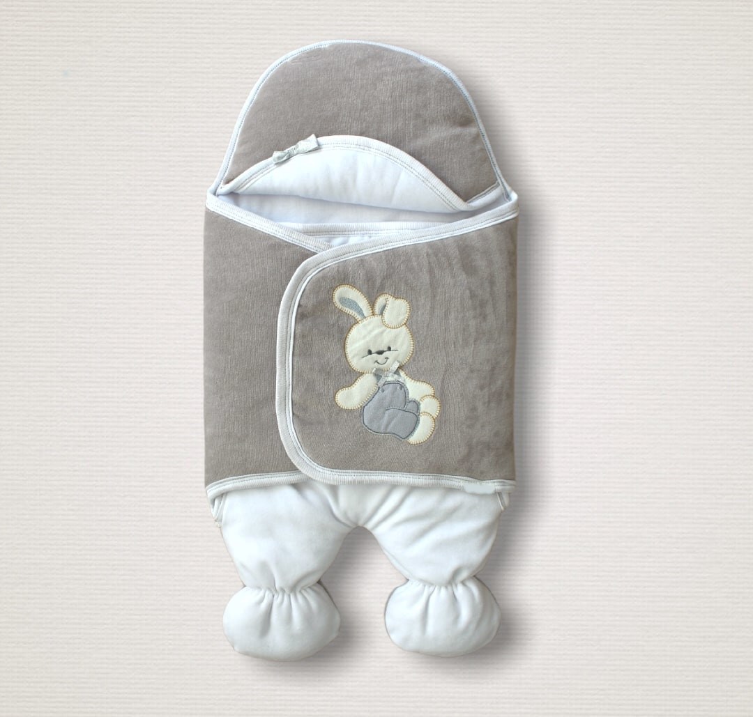 Yenidoğan Kadife Kumaş Ayıcık Nakışlı Şapkalı Kız Erkek Bebek Ayaklı Kundak Bebek Battaniyesi