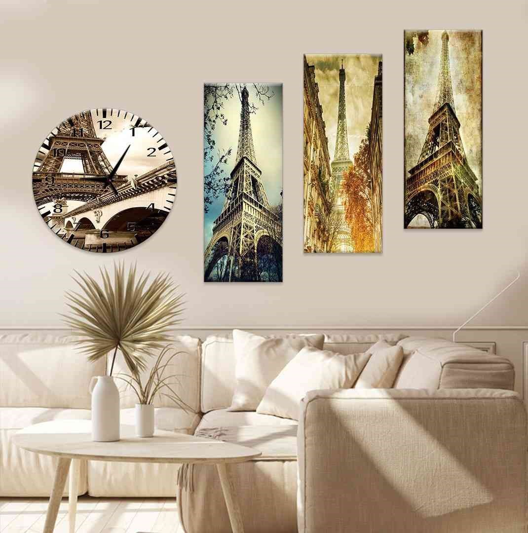 Evimona 4 Parça Paris Temalı Mdf Saatli Tablo Ds-032