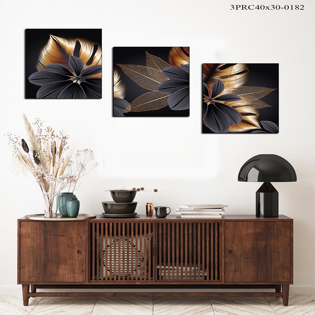 3Parça Dekoratif Çiçekler Mdf Tablo - 3Prcy40X30-0182 40X30