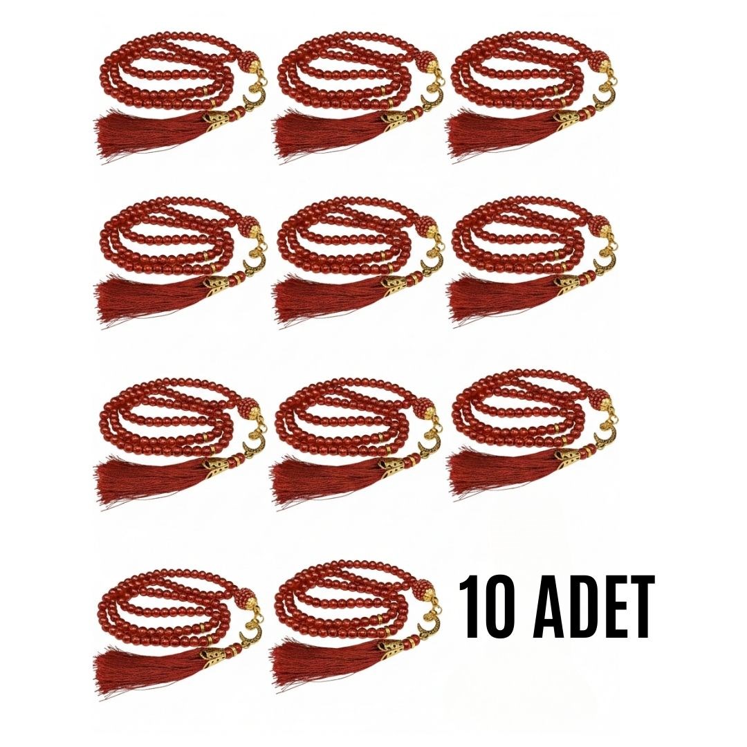 Namaz Tesbihi Vavlı 99'lu Cam İncili Ayet-el Kürsi Dua Kartı İle Bordo Renk Hediyelik 10 Adet