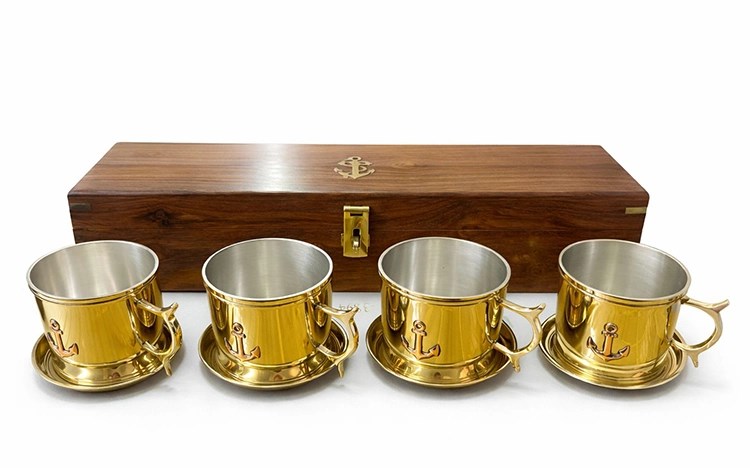 38x10 Cm Ahşap Kutulu 4'lü Pirinç Fincan Seti