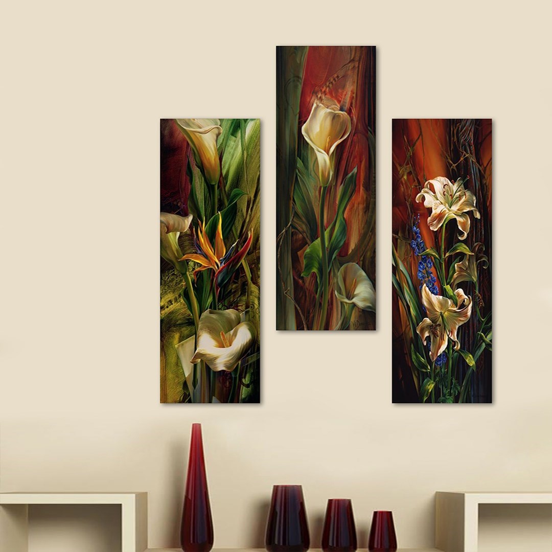 3 Parça Retro Çiçek Tasarım Mdf Tablo - 3Dikey-148 20X60