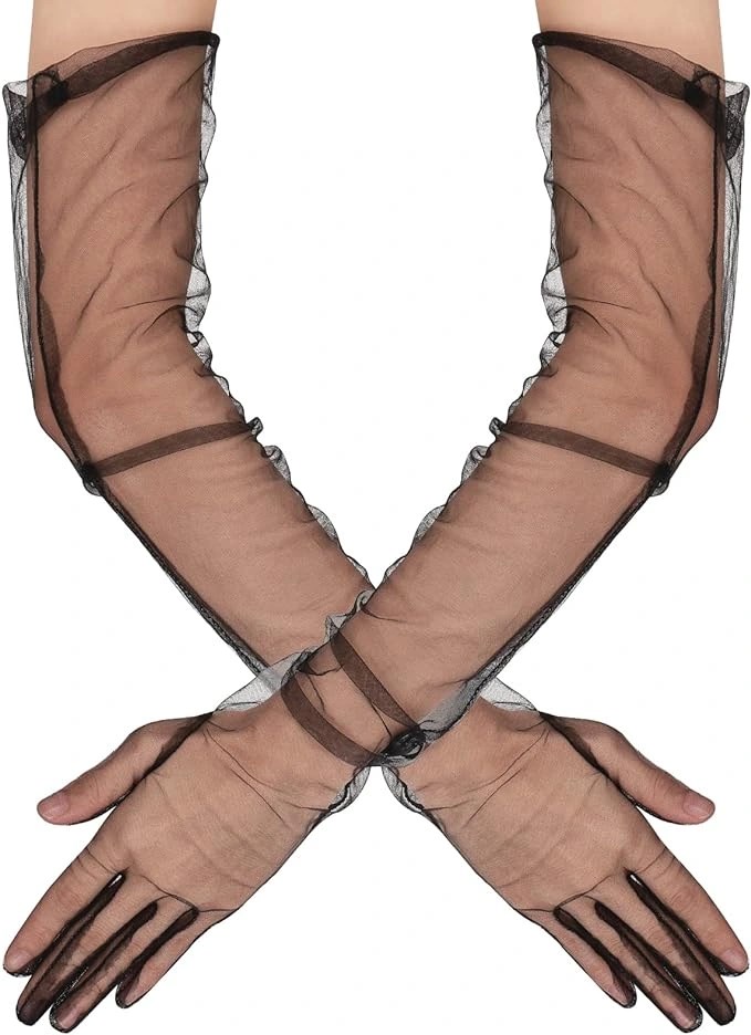 Uzun Boy Likralı Siyah Yetişkin Mega Tül Eldiven