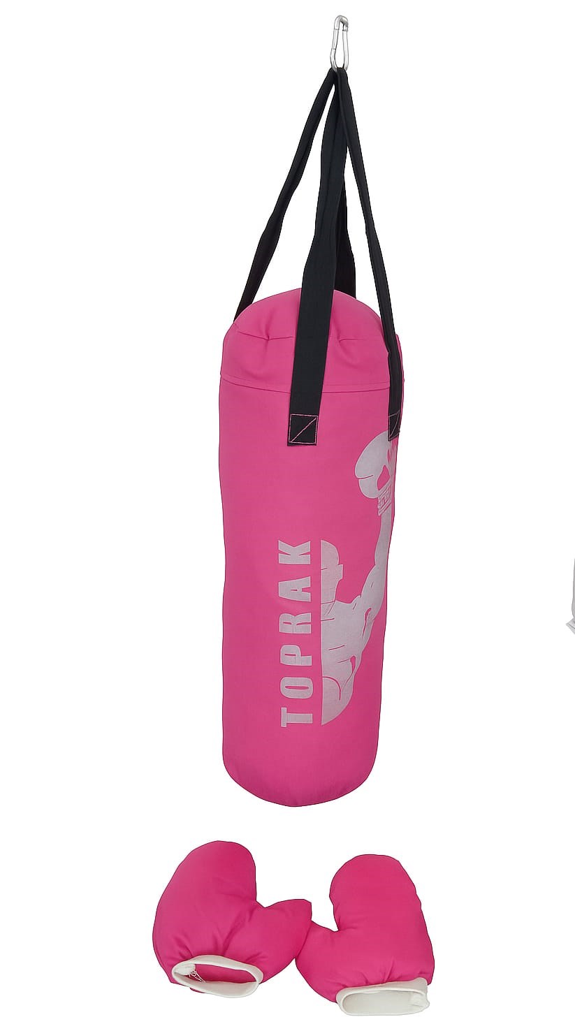 Boks Torbası Eldiven Ve Karabina Hediyeli İçi Dolu 50x20 Cm Pembe
